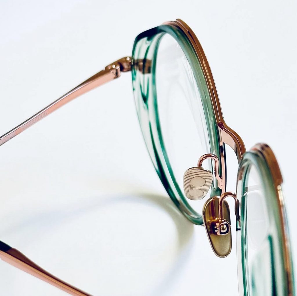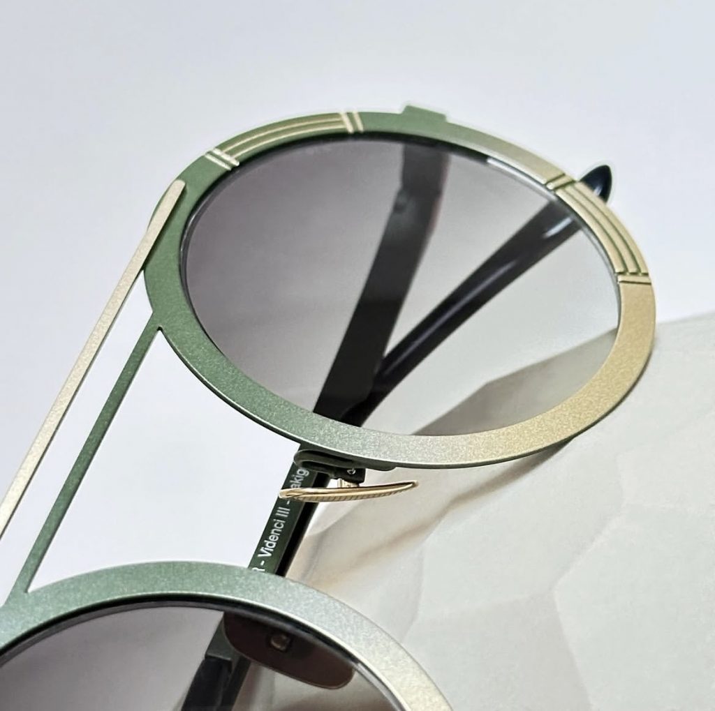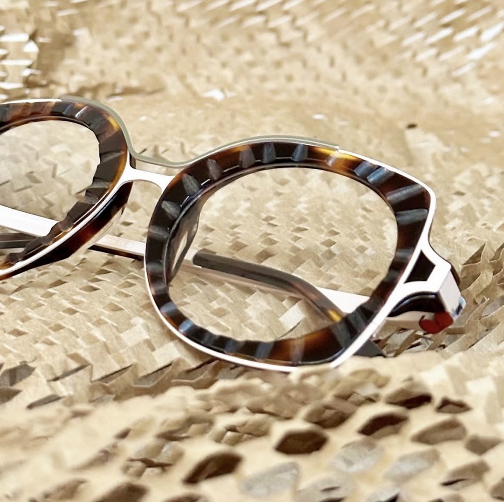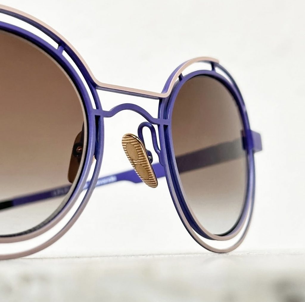 Chaque monture est signée d’un double pont resserré comme un clin d’œil aux clips solaires de cette décennie. Au début, uniquement en rouge, la barre supérieure est maintenant colorée en différentes nuances.