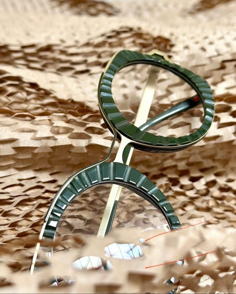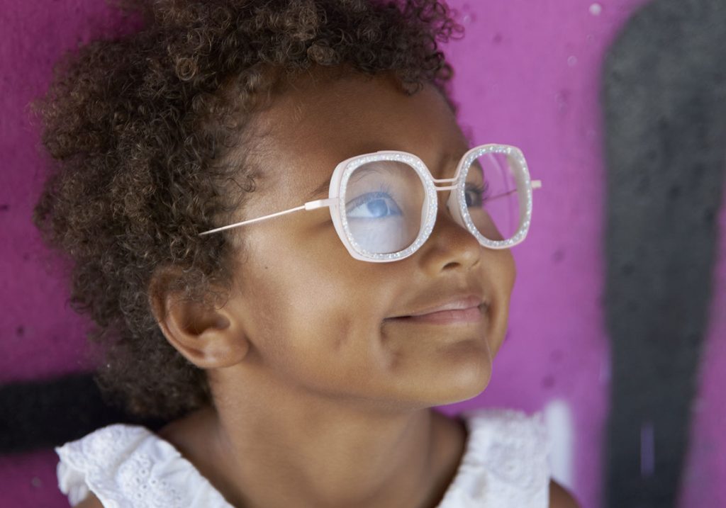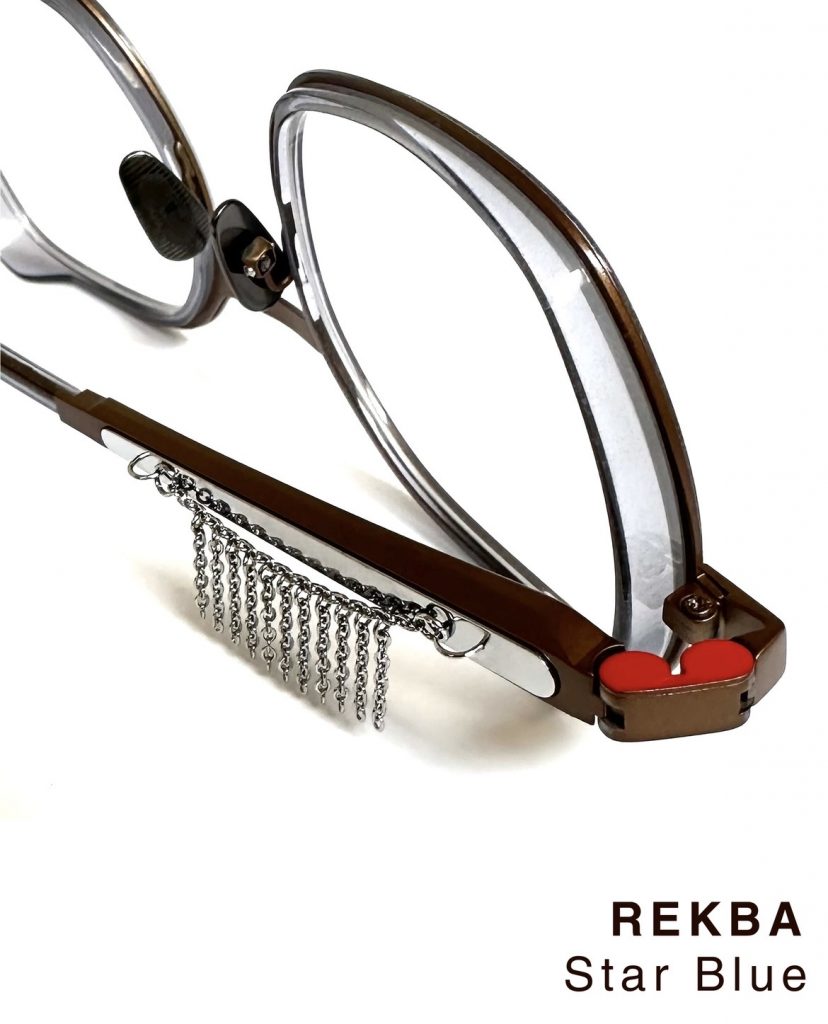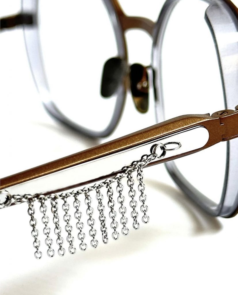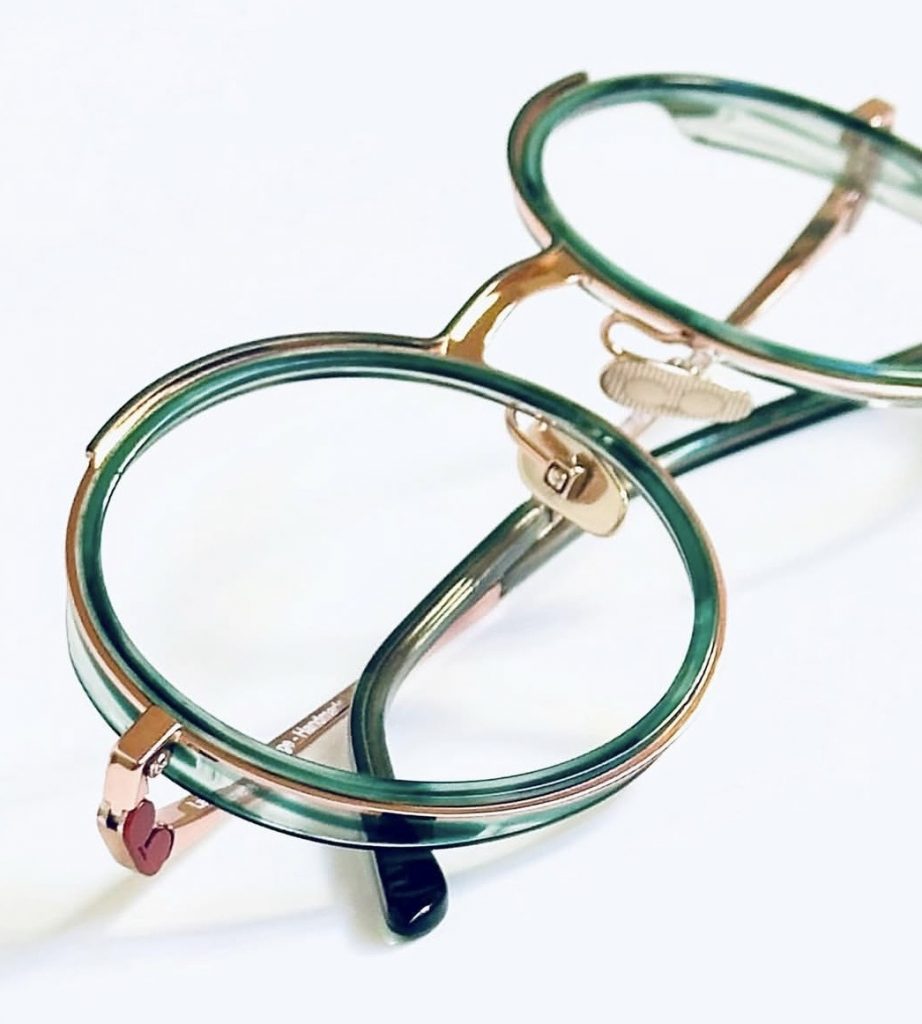 Chaque monture est signée d’un double pont resserré comme un clin d’œil aux clips solaires de cette décennie. Au début, uniquement en rouge, la barre supérieure est maintenant colorée en différentes nuances.